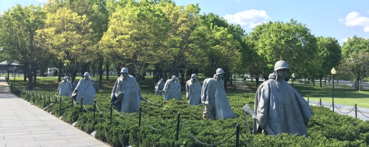 Beyond the Reflecting Pool, we’ll examine the minimalist power of the Vietnam Veterans Memorial and how its groundbreaking design sparked national debate. At the Korean War Memorial, we’ll consider the use of space, form, and texture in honoring the “forgotten war.”